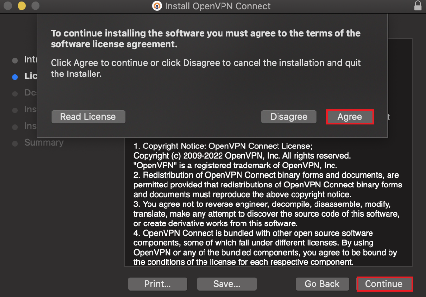 b. Klik "Continue" pada License Agreement untuk melanjutkan instalasi.
