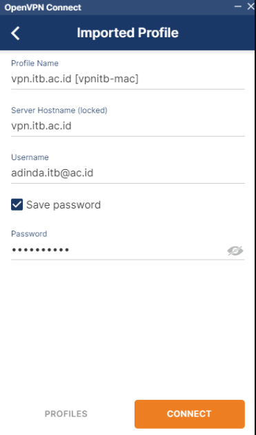 f. OpenVPN Connect anda sudah terhubunng ke VPN ITB